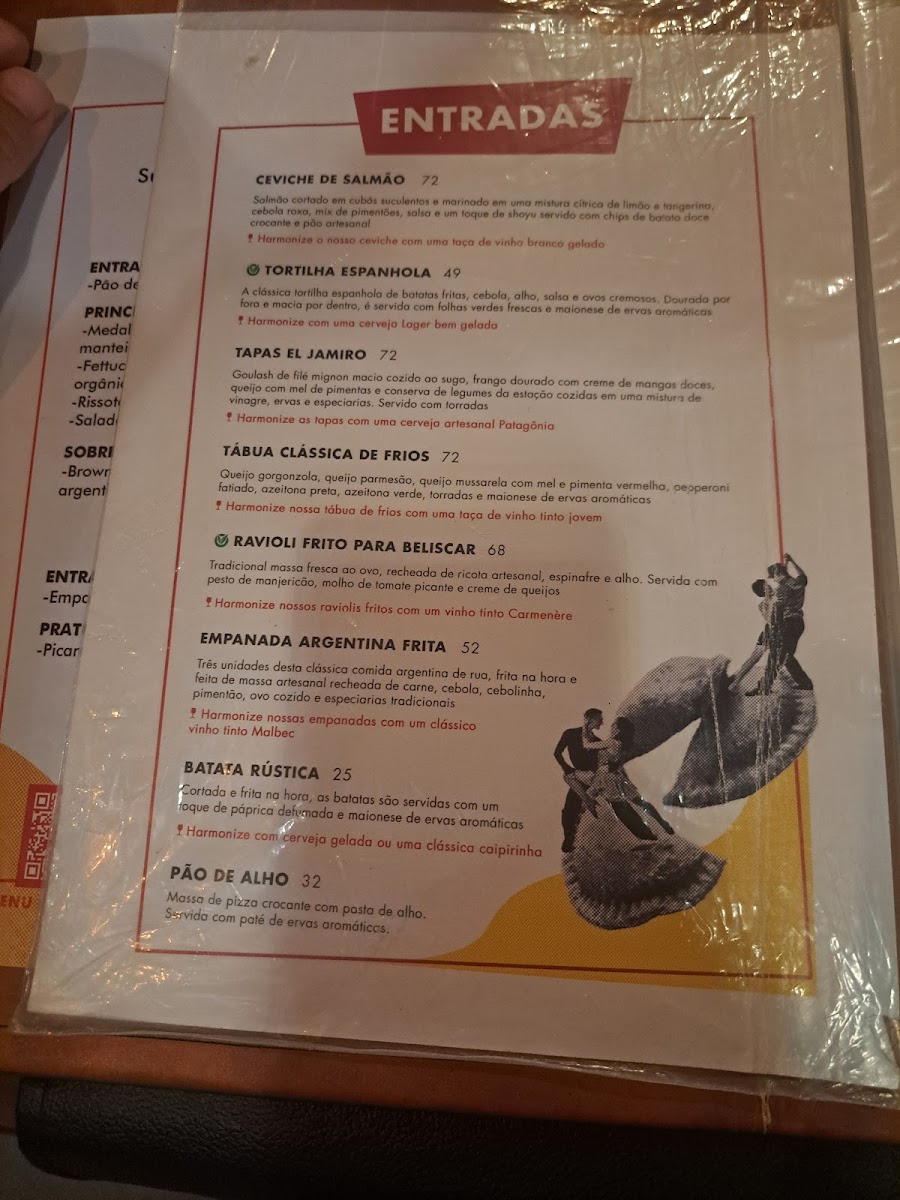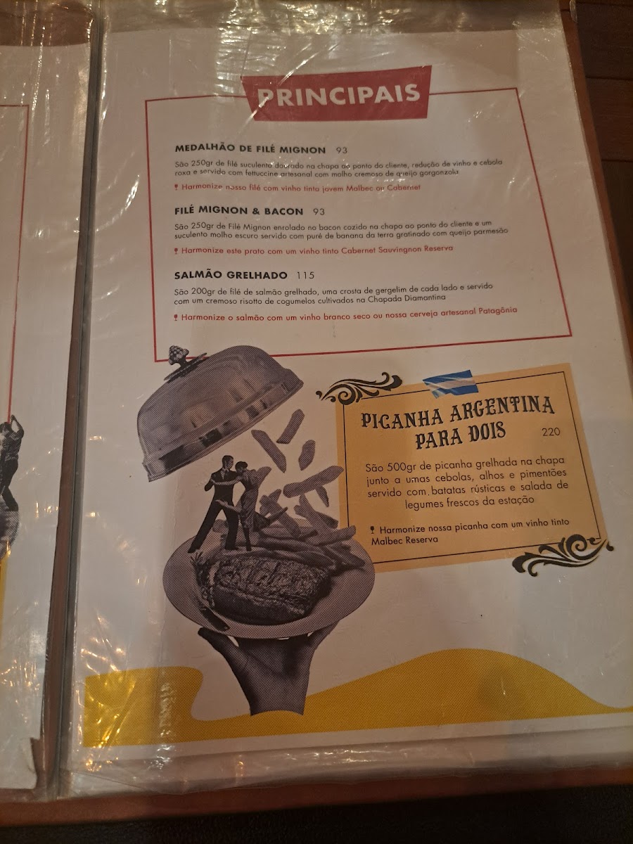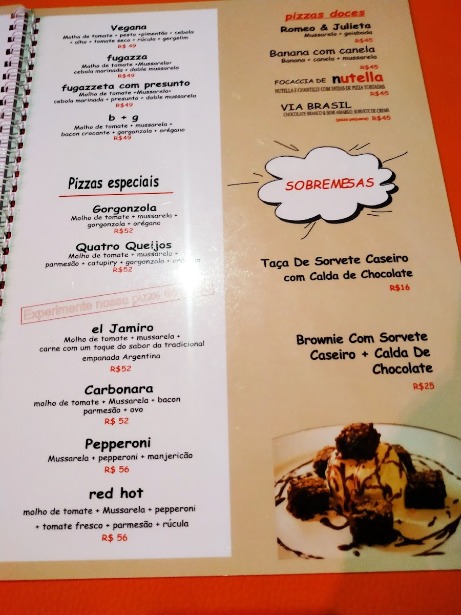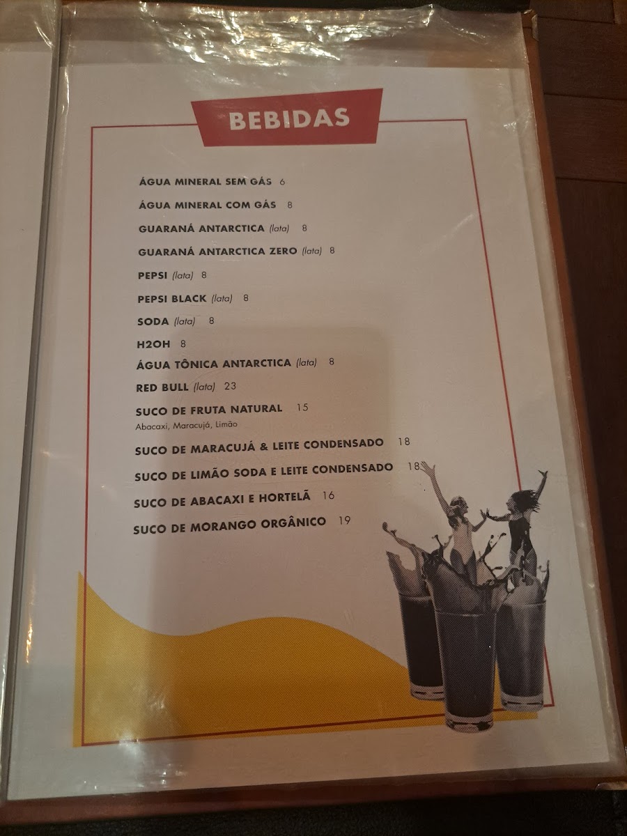 Moving to the main dishes, the Rodizio de Pizza is a highlight for pizza lovers, offering an endless variety of pizzas to satisfy your cravings. The Pizza de Rúcula Com Tomate Seco E Marguerita ao Molho Pesto combines fresh arugula and sun-dried tomatoes, perfectly complementing the classic Margherita with a pesto twist. For a more substantial meal, the Picanha Argentina and Carne do Sol A Banana da Terra are irresistible choices, both showcasing rich flavors and tender cuts of meat. The Talharim Com Medalhão de Filé Mignon and Fettuccione Com Ragu de Filé Mignon offer a delightful Italian touch, featuring succulent pieces of filet mignon in rich, savory sauces.
